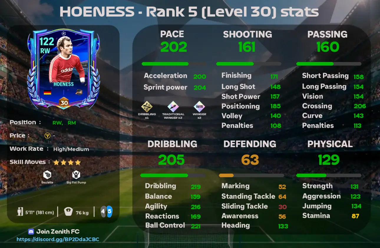 If you enjoy pacey wingers who can dribble smoothly and deliver dangerous crosses, Hoeneß is definitely a card worth considering.